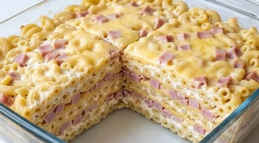 3. Slaganje slane torte (Slojevi): Pripremite dublju staklenu ili keramičku pravougaonu posudu (oko 20×20 cm ili 20×30 cm). Prvi sloj: Na dno posude rasporedite polovinu ohlađenih makarona u ravnomernom sloju. Drugi sloj: Preko makarona nanesite polovinu pripremljenog kremastog fila i pažljivo ga razmažite špatulom tako da uđe između testenine. Treći sloj: Ravnomerno pospite svu seckanu šunku (300g) preko belog fila. (Po želji možete dodati i malo rendanog trapista u ovaj središnji deo). Četvrti sloj: Rasporedite drugu polovinu makarona. Peti sloj: Nanesite ostatak belog fila i lepo zagladite površinu, trudeći se da blago pritisnete celu tortu kako bi se slojevi sabili i nestao vazduh između njih.